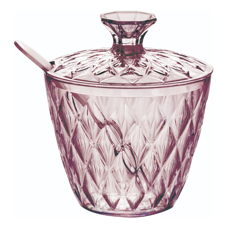 La Azucarera con cuchara Carol de la línea Soft es un producto de alta calidad que combina funcionalidad y estilo. Su diseño elegante y moderno, en un atractivo color rosa, aportará un toque de sofisticación a tu hogar. Esta azucarera está fabricada en acrílico, un material resistente y duradero, que garantiza su uso prolongado. Además, está libre de BPA, lo que la hace segura para el contacto con alimentos.