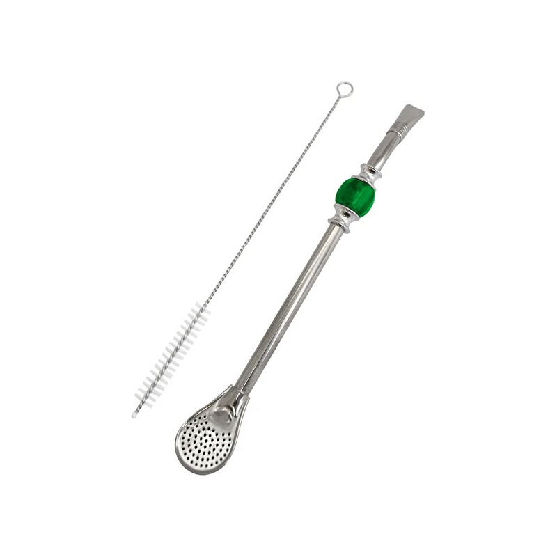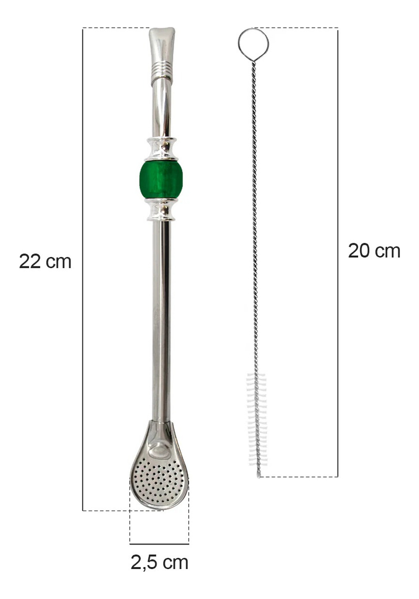 Bombilla de diseño curvo, cómodo y elegante. Incluye una piedra de color miel semitransparente que destacará en tu mate favorito. Incluye 1 cepillo limpiador y se adapta a cualquier tipo de mate.
