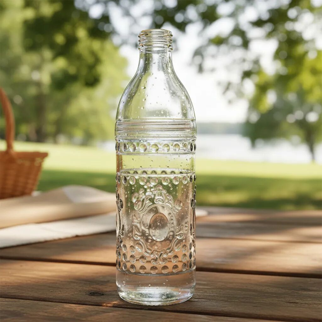 Esta botella es perfecta para quienes desean añadir un toque de elegancia a sus espacios. Su diseño estilo retro con detalles de Flor de Lis la convierte en un complemento versátil y atemporal. Sea que busques complementar tu colección de artefactos decorativos o necesites una solución práctica y estéticamente agradable para almacenar líquidos, esta botella es la elección ideal. Sus líneas suaves y acabado meticuloso reflejan artesanía de primera, prometiendo ser una conversación asegurada entre tus invitados.