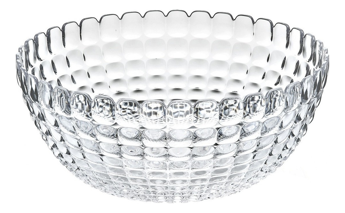 Precioso bowl de acrílico transparente con efectos brillantes. Es parte de la prestigiosa línea Tiffany, ideal para el exterior y capaz de embellecer incluso las mesas más formales.