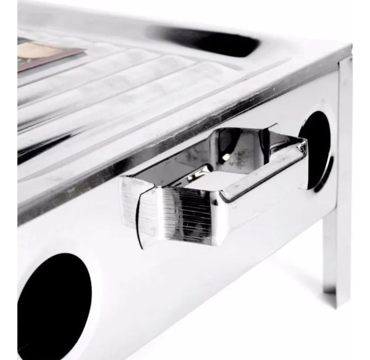 Disfruta de la experiencia de un asado donde quieras con el Brasero De Mesa Parrilla Acero Inoxidable Carol. Este producto, con su diseño rectangular y práctico, es perfecto tanto para interiores como exteriores, permitiéndote compartir momentos inolvidables alrededor de una comida caliente. Fabricado con acero inoxidable de alta calidad, garantiza durabilidad y resistencia a la intemperie, manteniendo su aspecto elegante uso tras uso. Las asas de bakelita son un detalle pensado para tu comodidad, proporcionando un agarre seguro y fresco al tacto, facilitando el manejo y transporte del brasero sin preocupaciones. Aunque no cuenta con patas plegables, su diseño compacto y eficiente lo hace fácil de colocar en cualquier superficie. El modelo 8981 de la marca Carol es la elección perfecta para quienes buscan calidad y funcionalidad en un solo producto.
