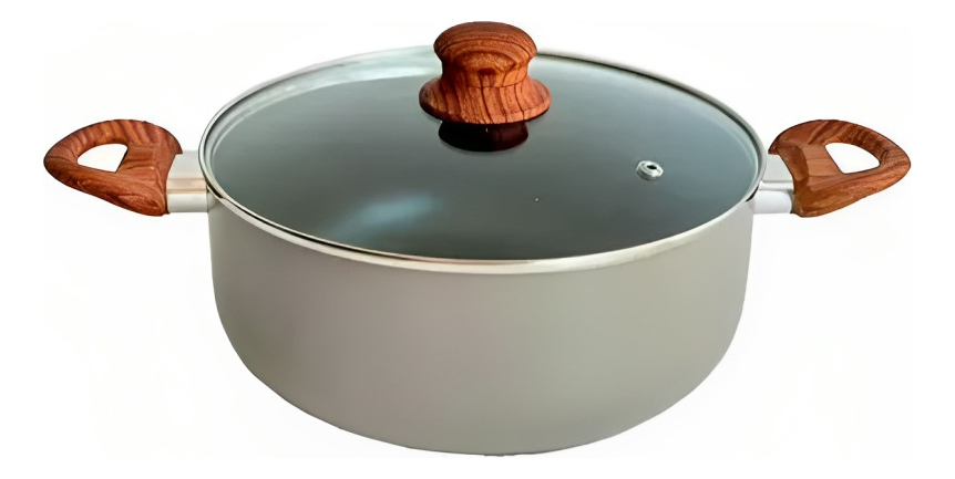 -Material: Aluminio con revestimiento antiadherente negro / Mango siliconado con decoración madera