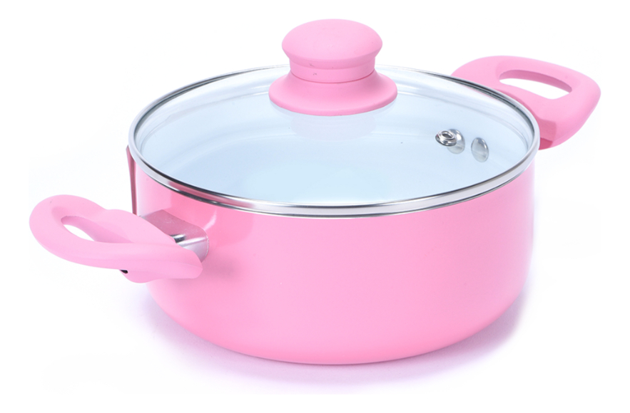 Cacerola linea antiadherente de ceramica con asas siliconadas y tapa de vidrio Carol Linea Soft.