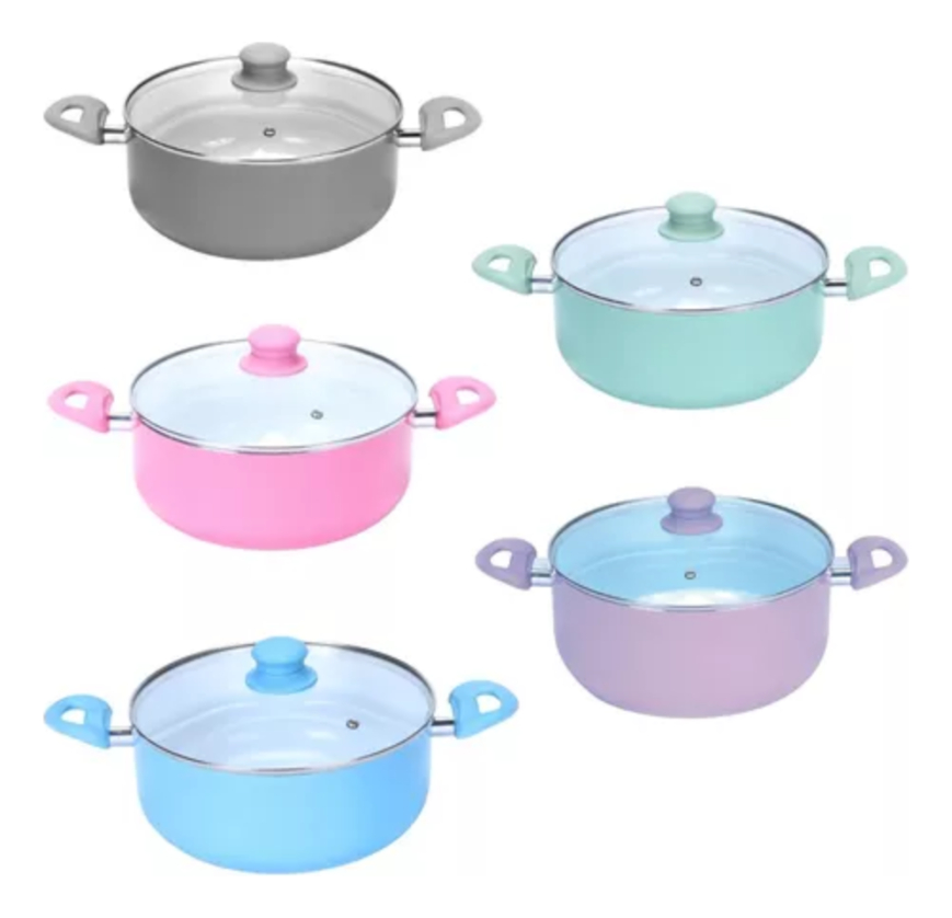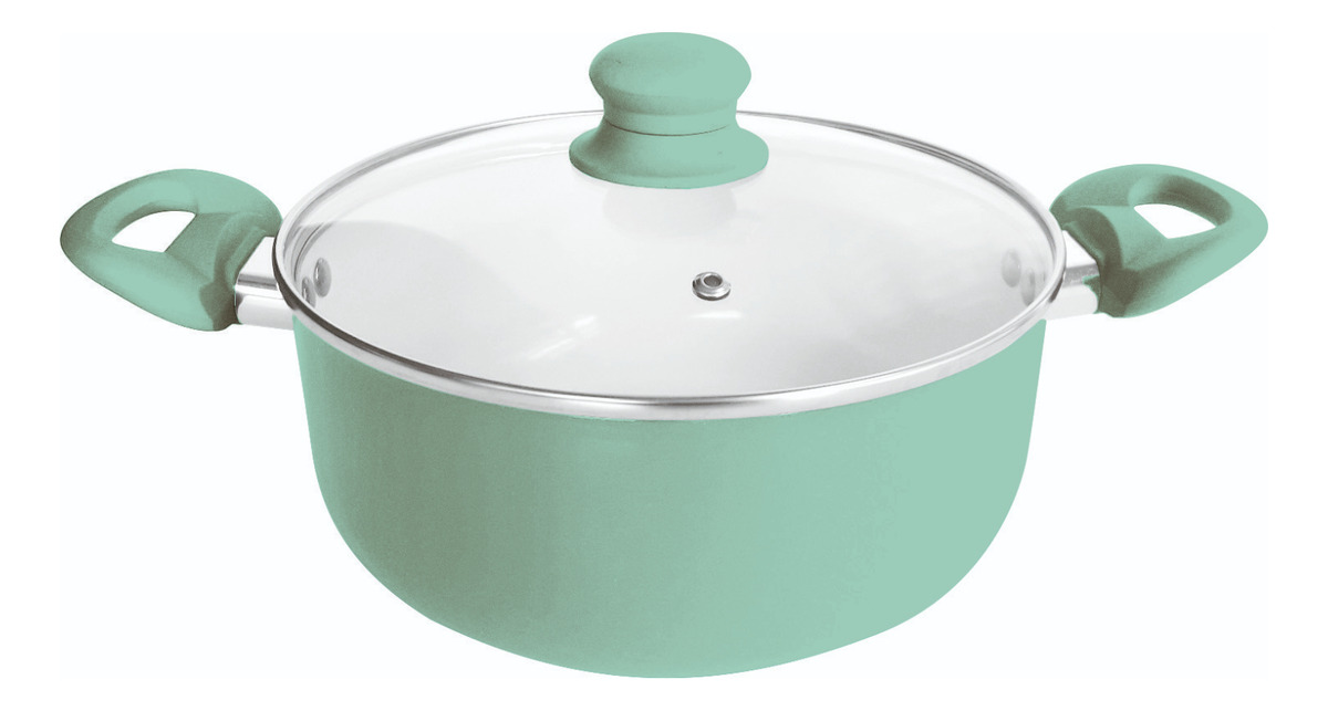 Cacerola linea antiadherente de ceramica con asas siliconadas y tapa de vidrio Carol Linea Soft.
