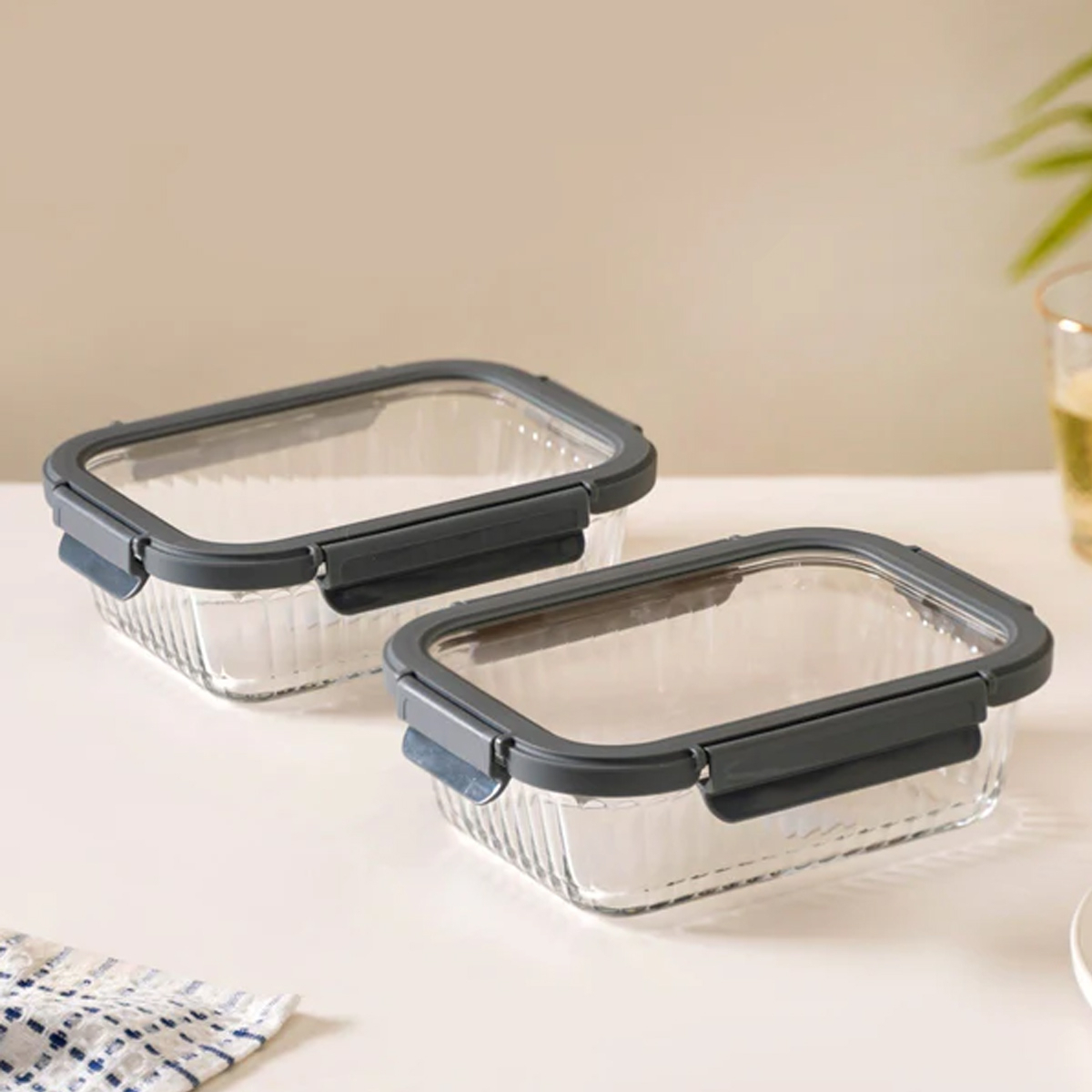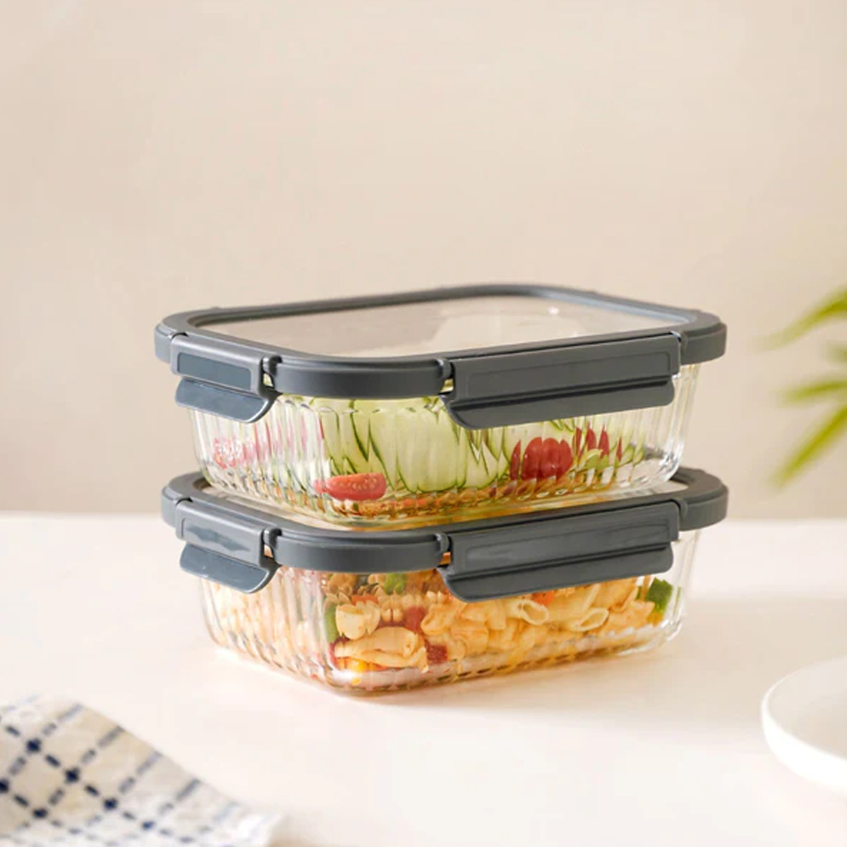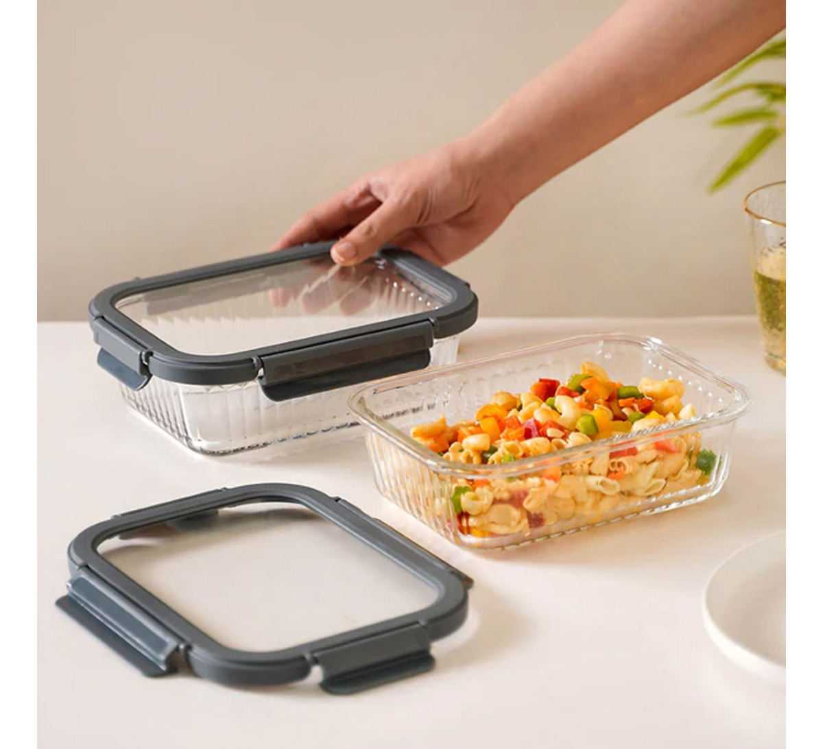 Estos contenedores de almacenamiento sirven para guardar sus comidas y aún así almorzar en el trabajo. En vidrio templado, este recipiente se puede meter en el microondas para calentar la comida y también lavar en el lavavajillas.