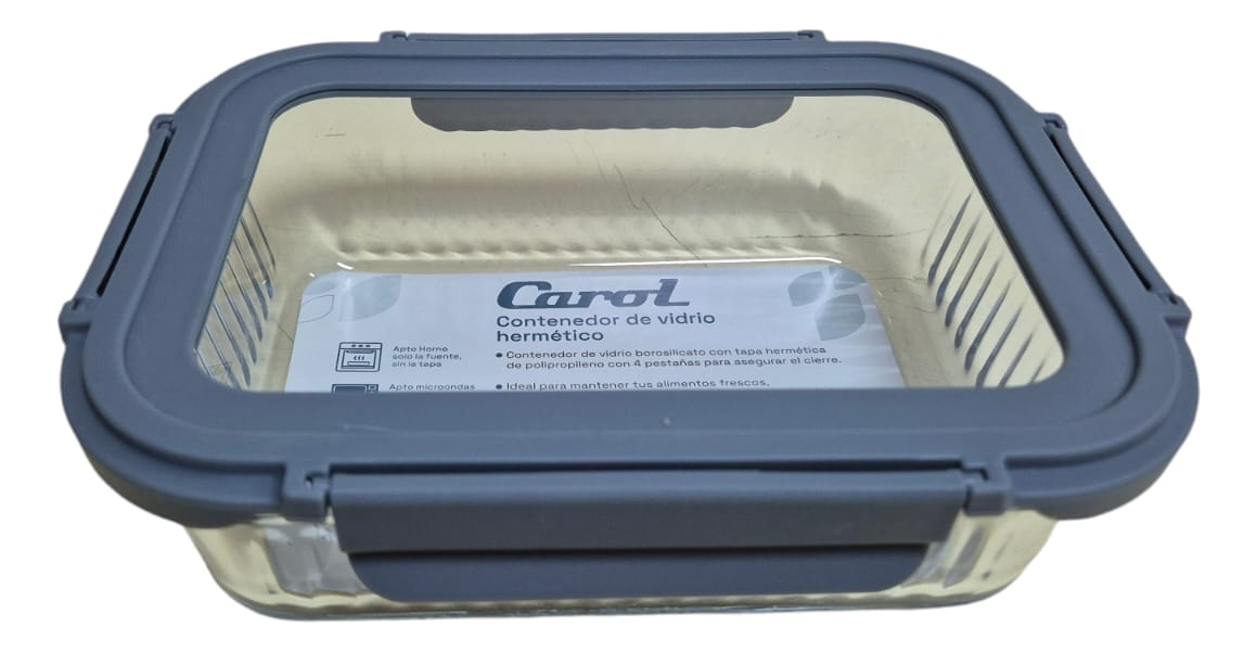 PRODUCTO: RECIPIENTE DE VIDRIO RECTANGULAR CON TAPA HERMÉTICA CAROL