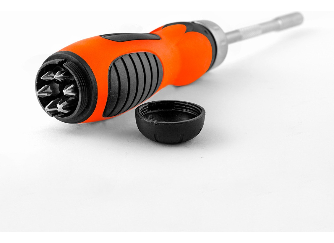 Además, este modelo incluye un encastre 1/4´´ magnético, facilitando el cambio de puntas y evitando que se pierdan. Viene con un set de 12 puntas: 3 Phillips, 3 Planas, 3 Torx y 3 Hexagonales, lo que lo convierte en una herramienta versátil y completa para cualquier trabajo de bricolaje o profesional.