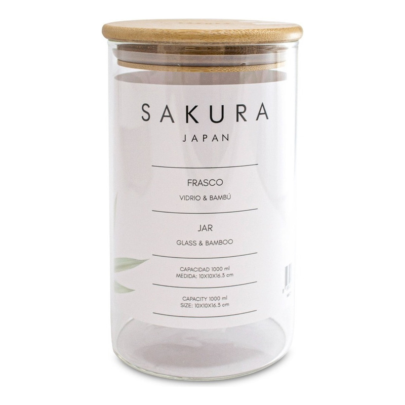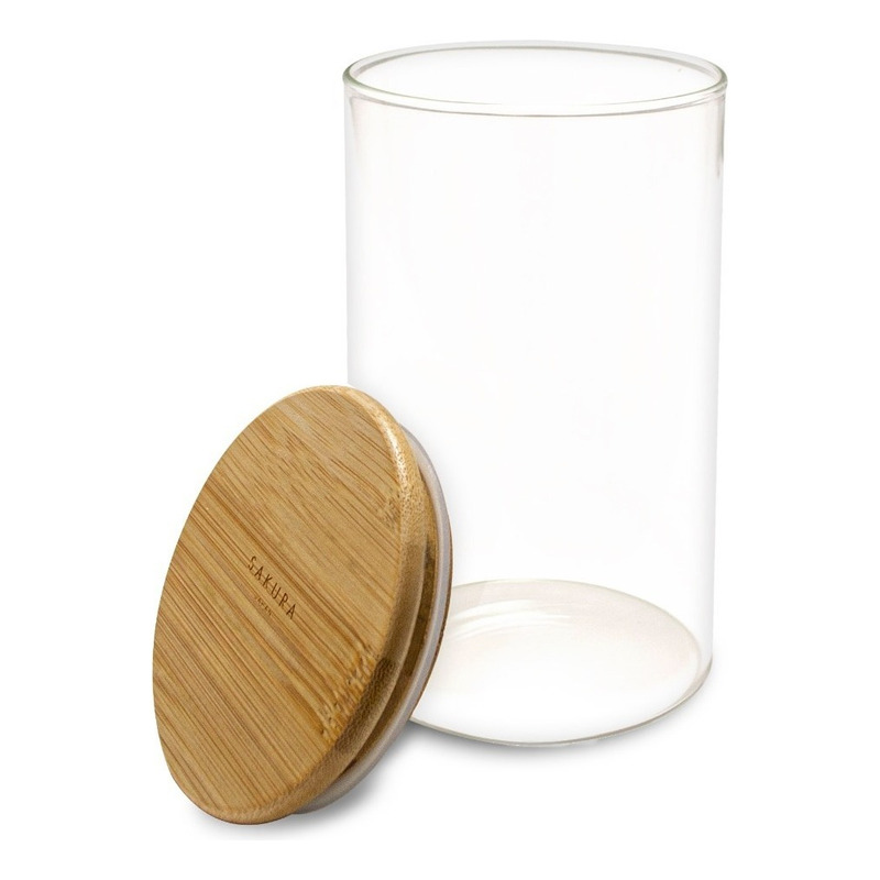 Fabricado en vidrio de borosilicato, con tapa de bambú y anillo de silicona para asegurar un cierre que bloquea la humedad y el aire, manteniendo el contenido fresco. El vidrio de borosilicato es resistente a los cambios de temperatura, permitiendo alternar entre contenidos fríos y calientes sin riesgo de agrietamiento. Adecuado para almacenar pasta seca, hierbas, especias, café, frutos secos, semillas y más.