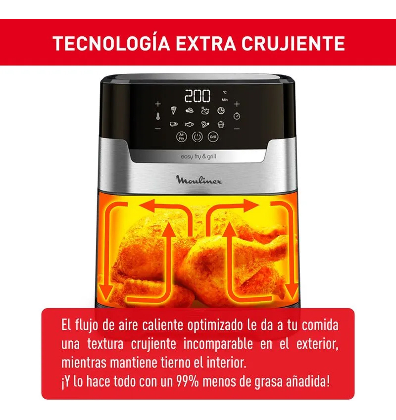 • Su tecnología Extra Crisp permite obtener resultados crujientes con poco o ningún aceite agregado.