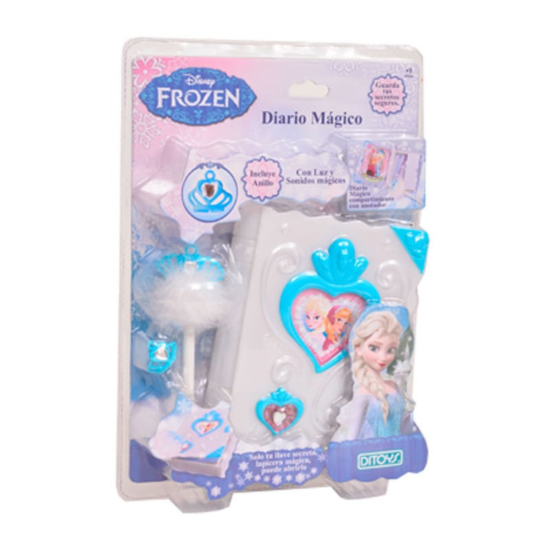 Excelente Diario Mágico Frozen con luz y sonidos mágicos. El diario trae consigo compartimiento con anotador, incluye un anillo y se caracteriza por guardar tus secretos de manera segura, ya que sólo tu llave secreta, lapicera mágica puede abrirlo. Al acercar la lapicera al centro del corazón, el diario se abrirá mágicamente.