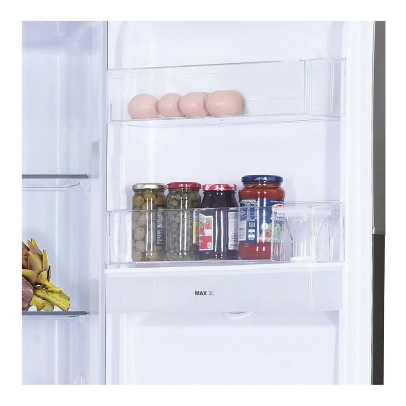 La heladera Side by Side de Candy cuenta con el programa Inteligente que programa la temperatura de los dos compartimentos automáticamente en función de la temperatura interna y la temperatura ambiente.