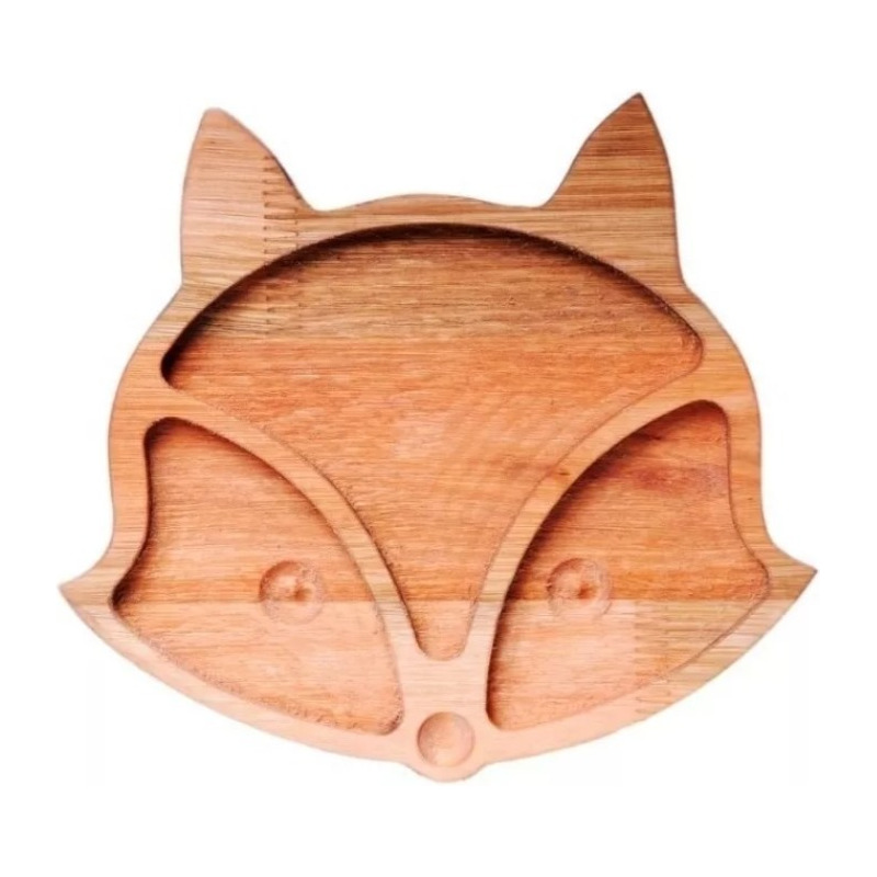 Plato zorro de eucalipto, fabricado con madera de eucalipto de primera calidad seleccionadas y pegamento americano apto para el contacto con alimentos y resistente al agua. Son 100% ecológicas y durables. Madera virgen, sin químicos, curada con aceite mineral neutro y cera de abeja, lista para usar.