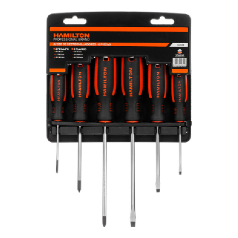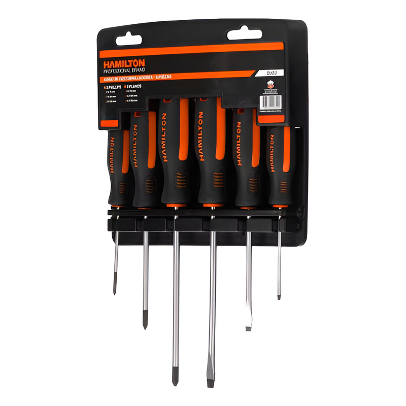 Juego 6 Destornilladores Hamilton Planos Y Phillips Blister
