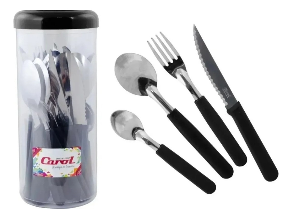 Con la garantía de la marca Carol, este set es nuevo y no tiene fecha de vencimiento, asegurando una larga vida útil. Perfecto para cualquier ocasión, este juego de cubiertos combina funcionalidad y estilo en un solo paquete.