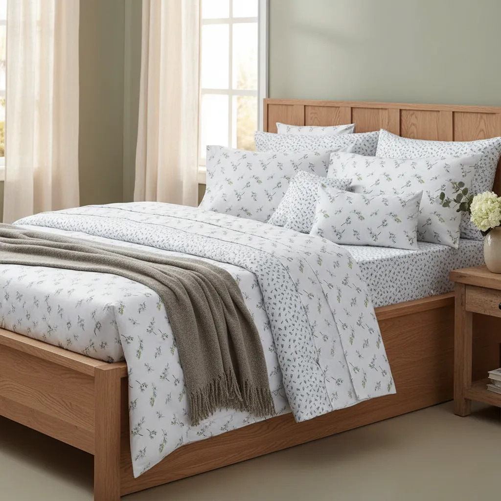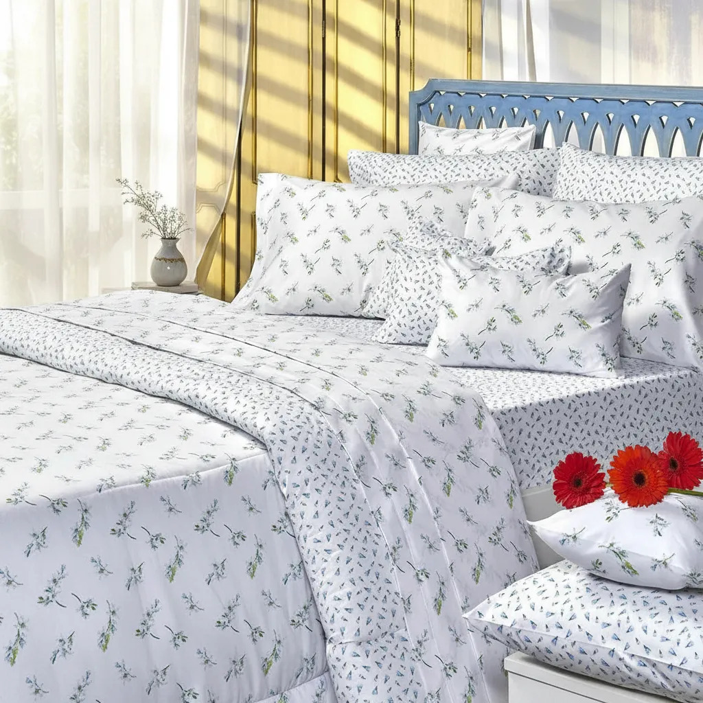 El material de algodón de 144 hilos proporciona una suavidad excepcional y una durabilidad que resiste el paso del tiempo. La funda de almohada, de 50 cm de ancho y 75 cm de largo, complementa el conjunto, asegurando que cada elemento esté en armonía para un descanso reparador.
