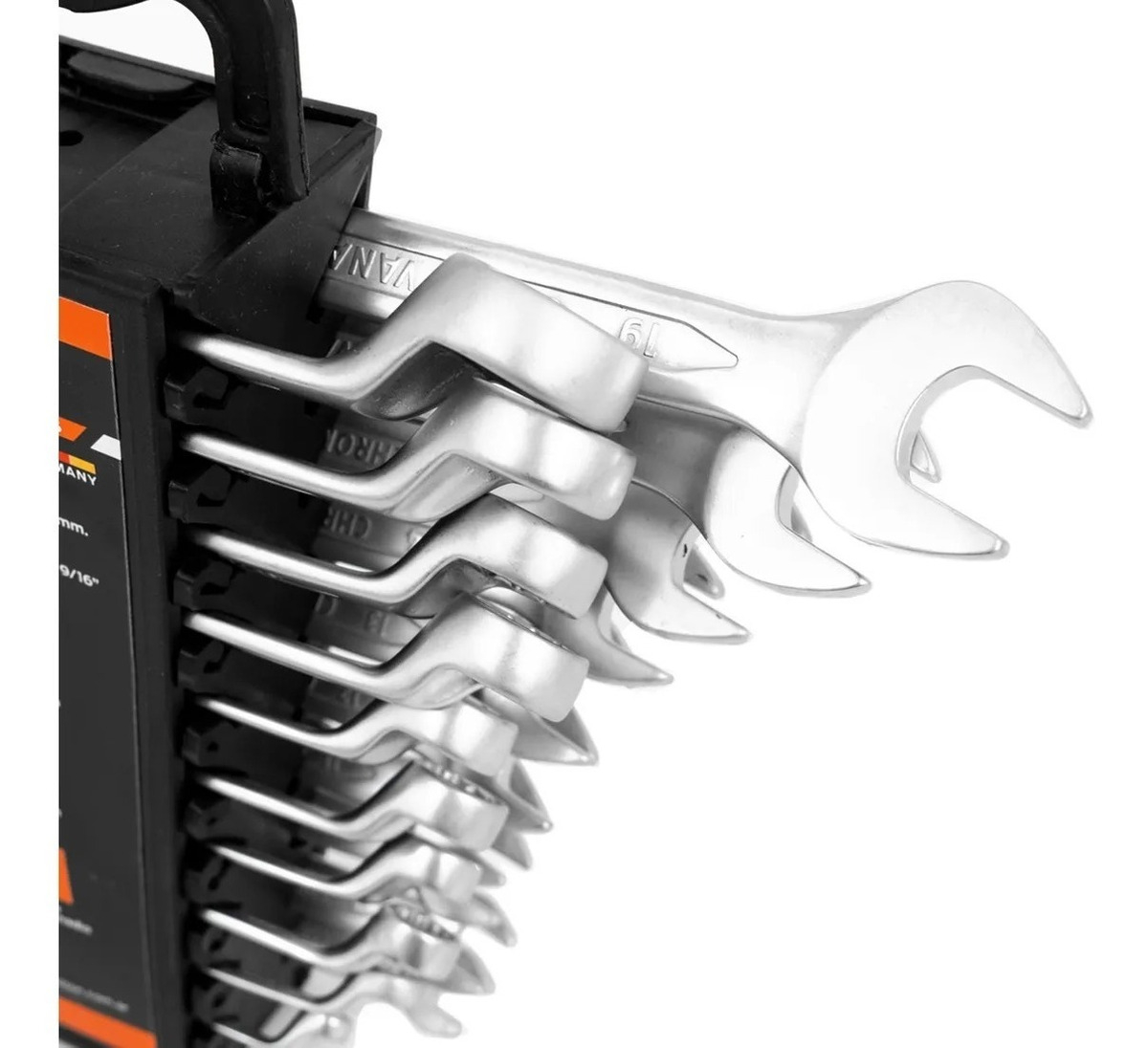 Este set incluye llaves métricas forjadas en acero Cromo Vanadio: