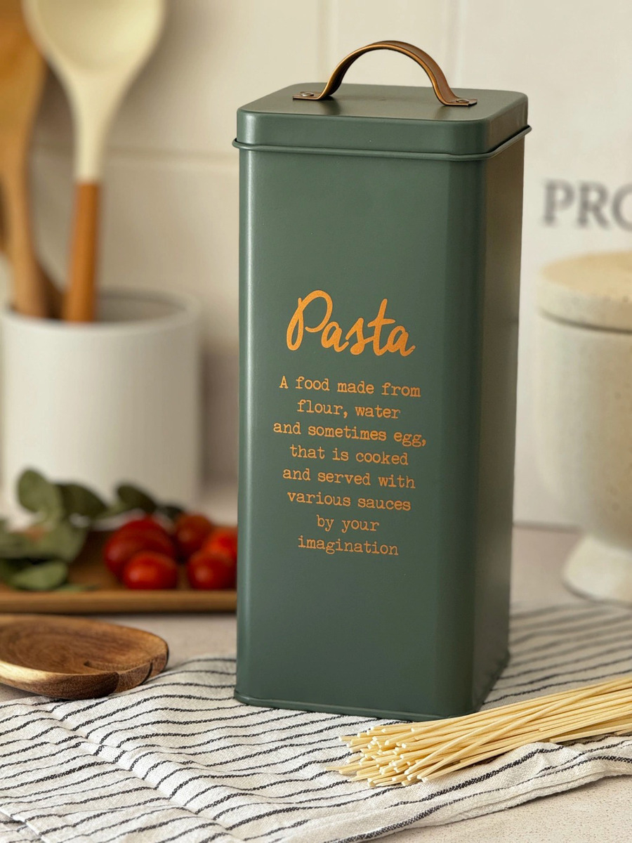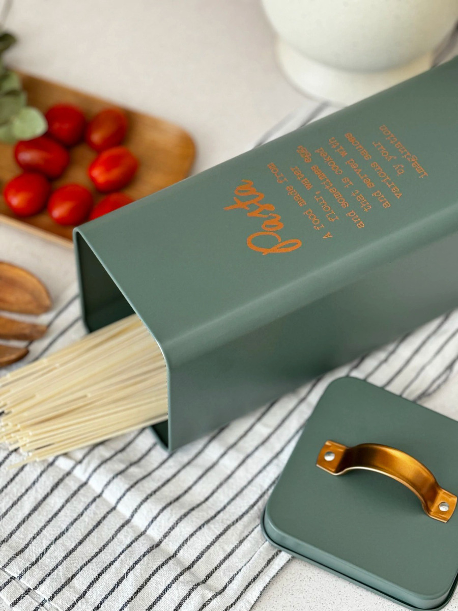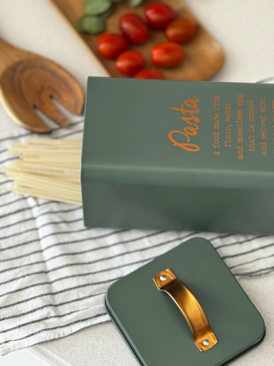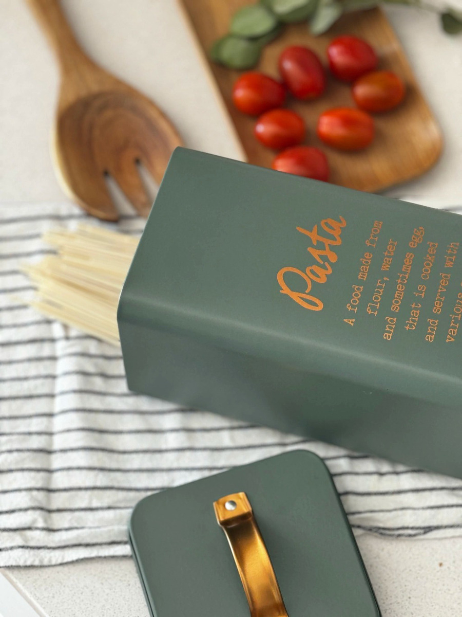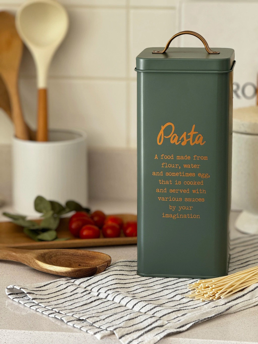 Lata Fideos Deco Y Guardado Diseño Verde Y Asa Bronce Carol