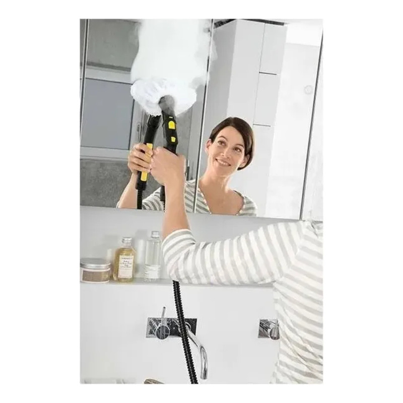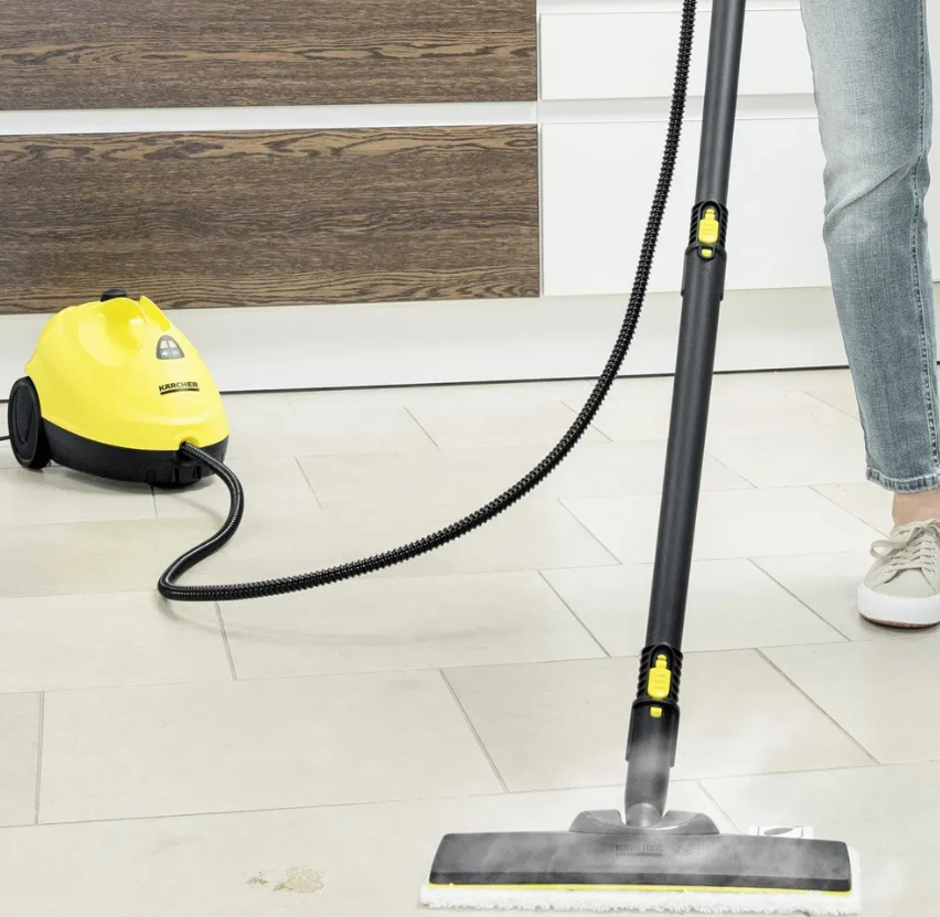 La limpiadora de vapor básica, simple y fácil de utilizar SC 2 EasyFix permite regular el vapor en dos etapas para adaptar su intensidad en función de la superficie y la suciedad. Un práctico almacenaje de accesorios en el equipo y la posición de estacionamiento para la boquilla para suelos son detalles prácticos que consiguen que la limpieza con vapor resulte aún más cómoda. La boquilla para suelos EasyFix con articulación flexible garantiza la máxima ergonomía y proporciona unos resultados de limpieza perfectos gracias a la tecnología de láminas. El cómodo sistema de velcro permite fijar de manera sencilla y rápida el paño para suelos de microfibra a la boquilla para suelos y quitarlo sin entrar en contacto con la suciedad. La limpiadora de vapor SC 2 EasyFix de Kärcher limpia sin ningún producto químico y es de uso universal. Con una limpieza a fondo se eliminan el 99,99 % de las bacterias comunes en superficies duras habituales. Con un uso adecuado de los diversos accesorios, limpia de forma higiénica las baldosas, la placa de cocina, la campana extractora y hasta las ranuras más pequeñas. Incluso la suciedad resistente se elimina con eficacia.