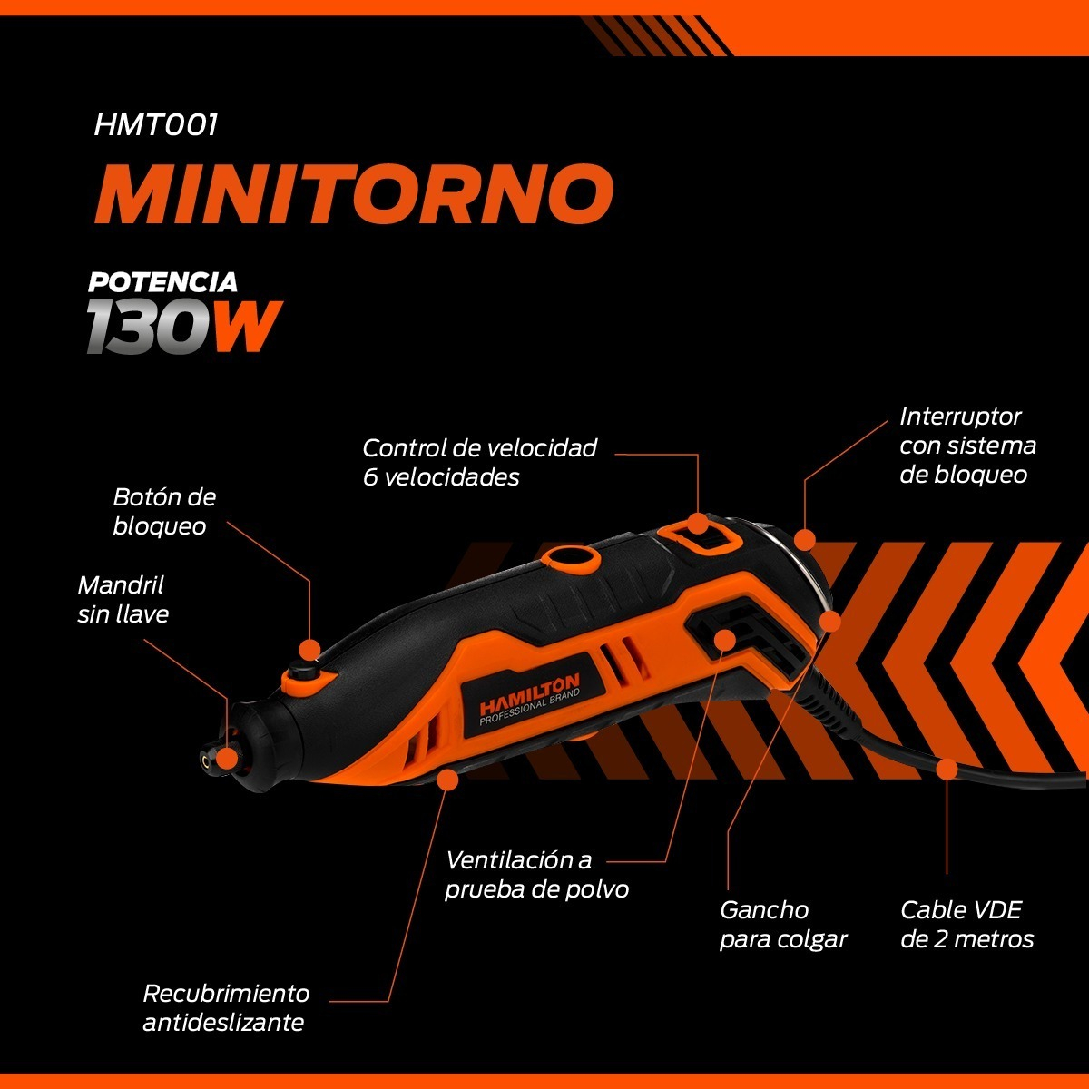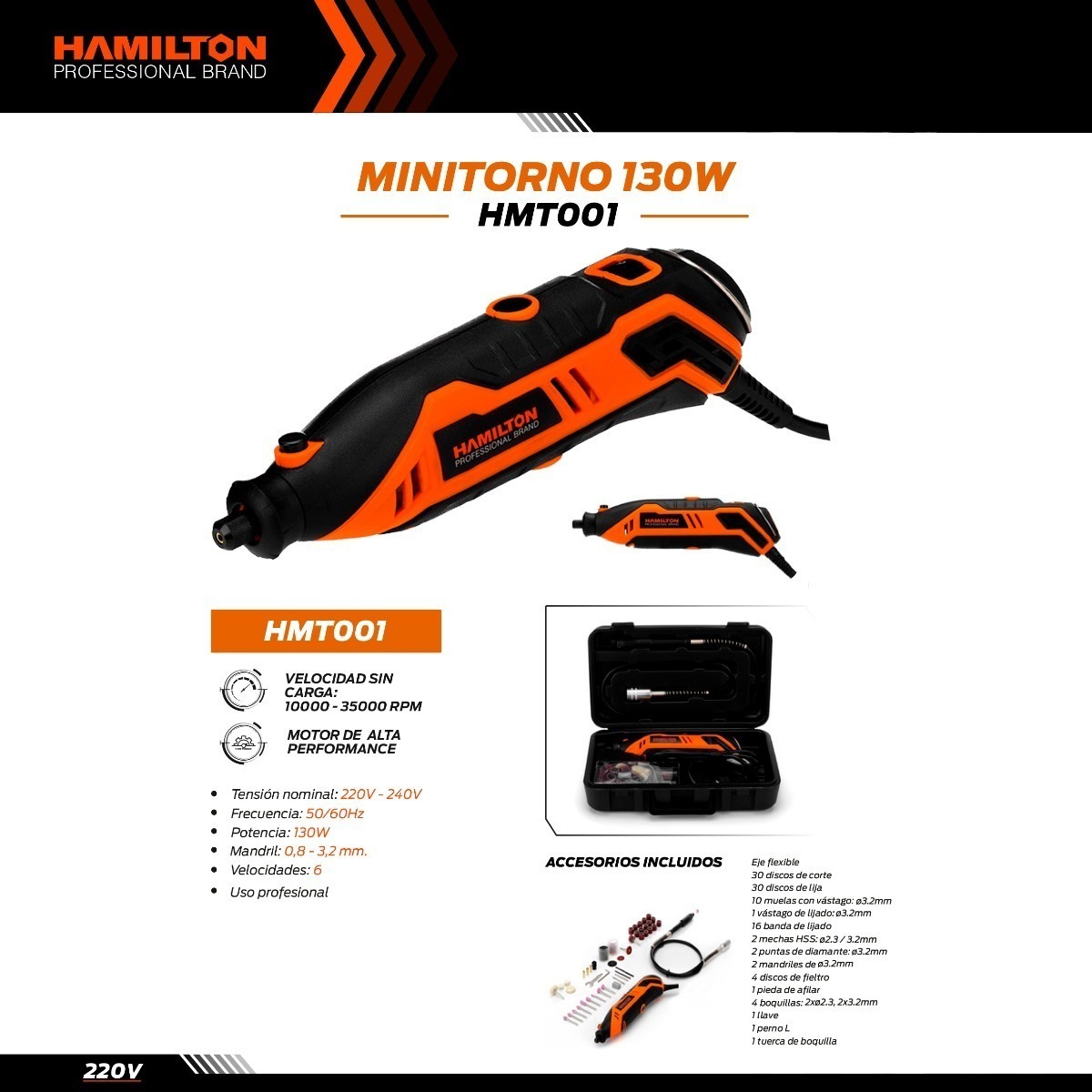Mini Torno 130w Electrico + Estuche Accesorios Hamilton Potencia 130 W