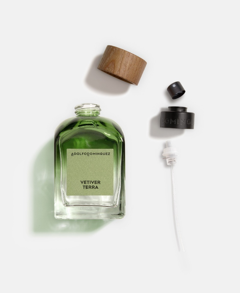 El Perfume Adolfo Dominguez Vetiver Terra 120ml para Hombre evoca el arraigo de las raíces en la tierra y el sonido envolvente de la lluvia. Es robusto, confortable y nada más.