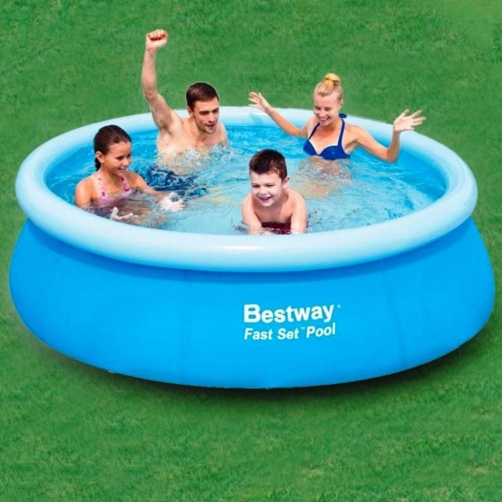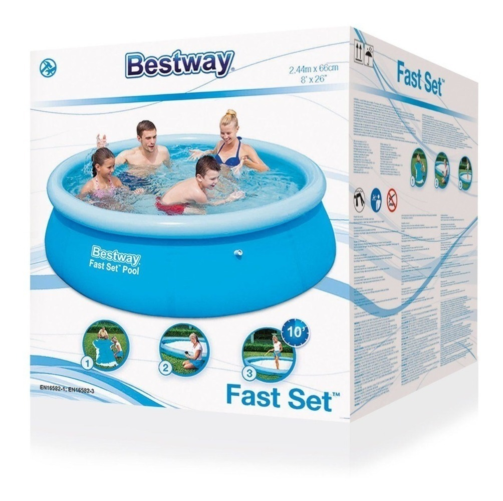 Pileta Inflable Redonda Bestway Fast Set 57265 De 2.44m X 66cm 2301l Azul Caja