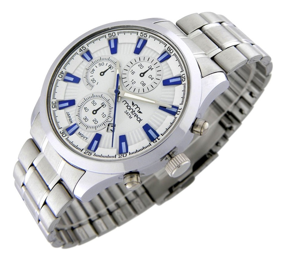 Reloj Montreal Hombre Ma383-ba Calendario Azul Gris Gris Blanco