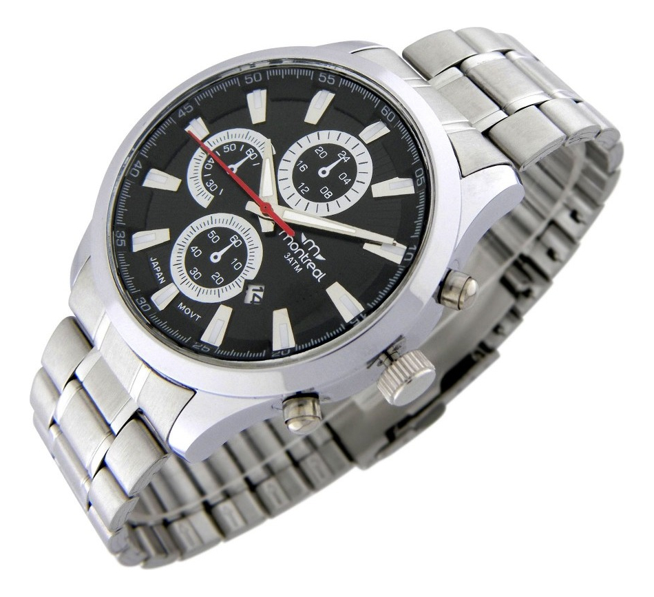 Reloj Montreal Hombre Ma383-nr Negro Calendario Gris Gris Negro