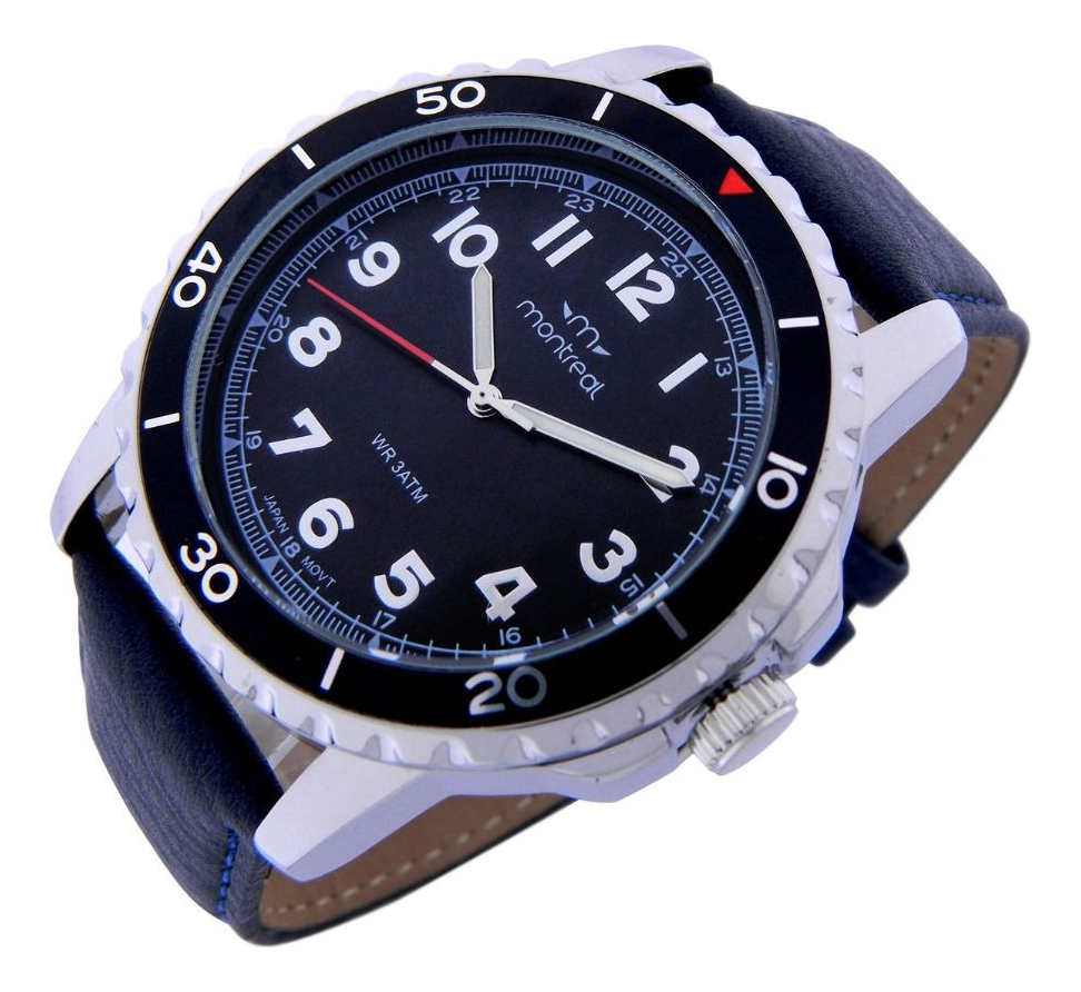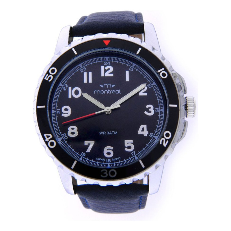 Reloj Montreal Hombre Mu728-na Cuero Azul Azul Oscuro Negro Negro