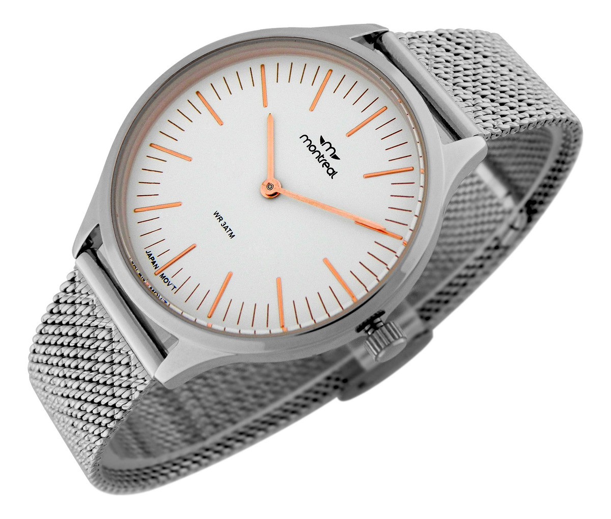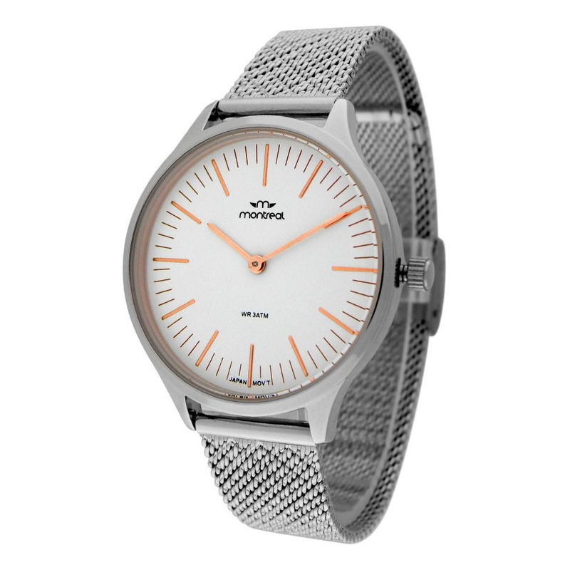 Reloj Montreal Mujer Ma390-p Acero Tejido Plata Gris Gris Blanco