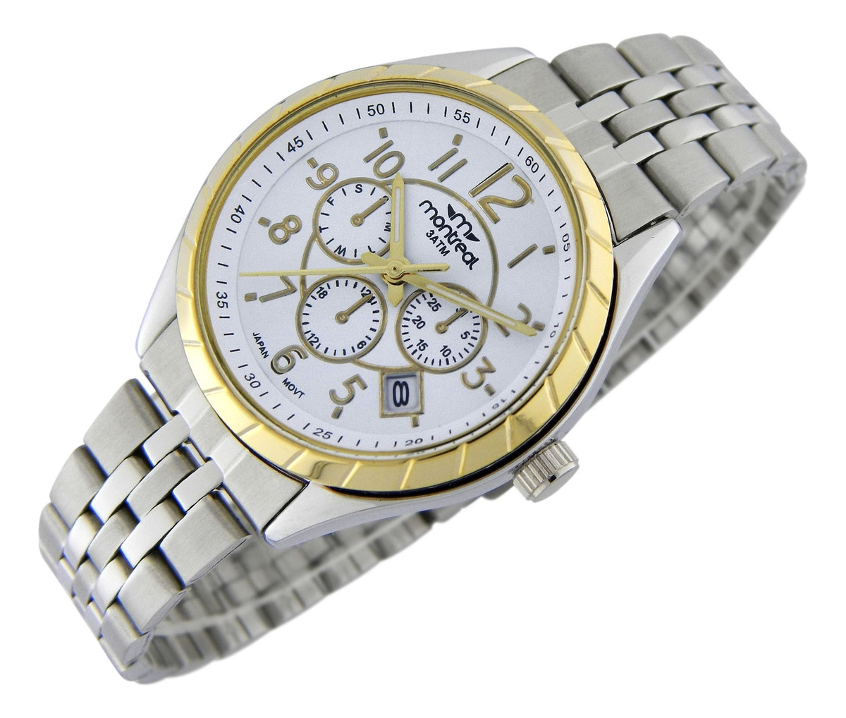 Reloj Montreal Hombre Ma381-p Plata Calendario Gris Gris Blanco