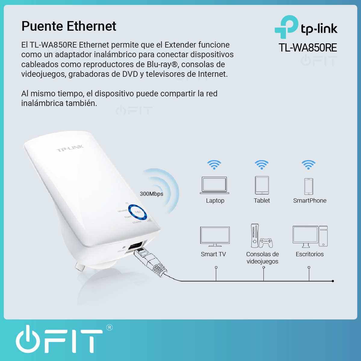 Wi-Fi Universal de 300Mbps. Extensor de Alcance TL-WA850RE.