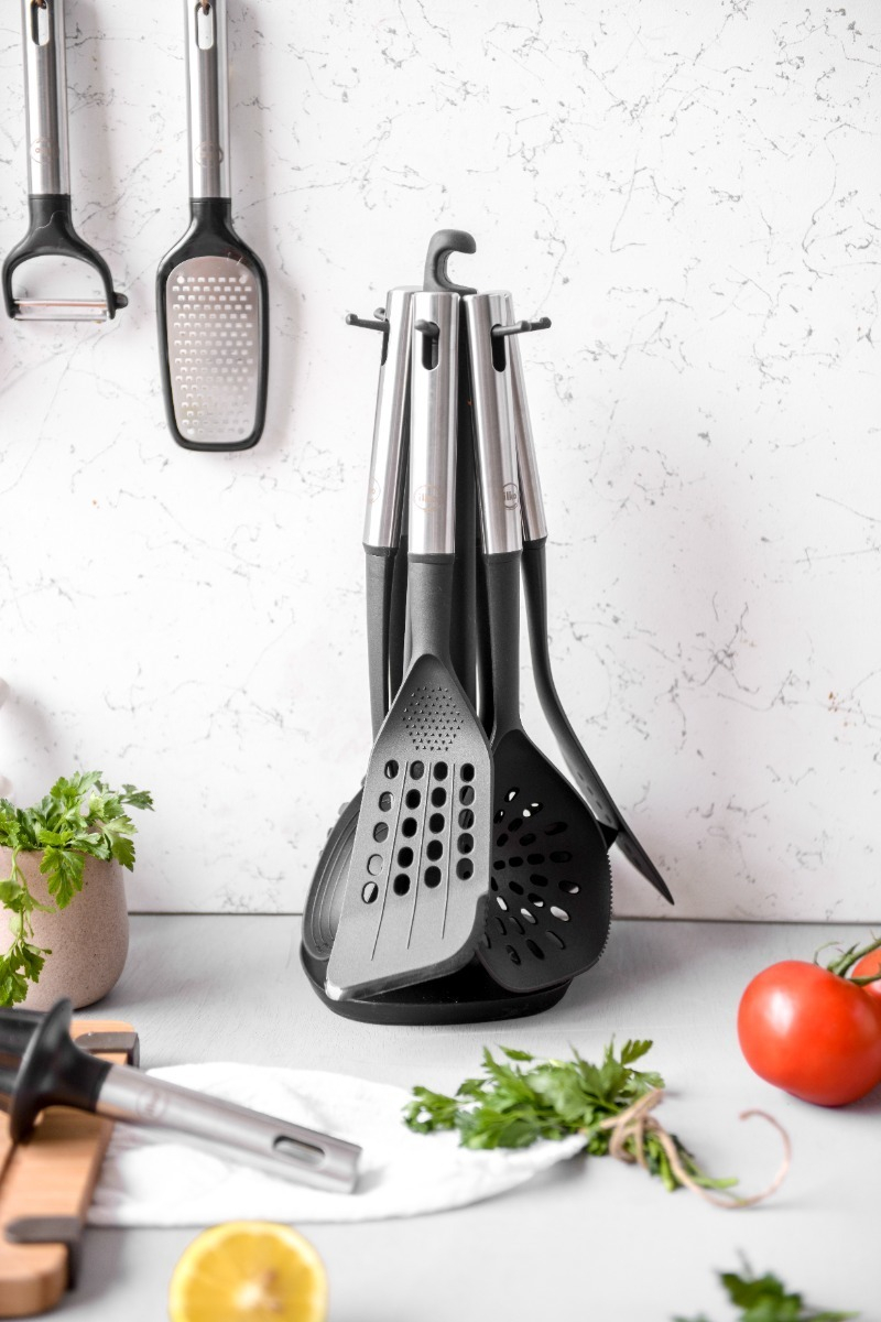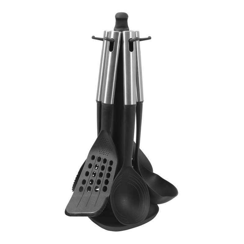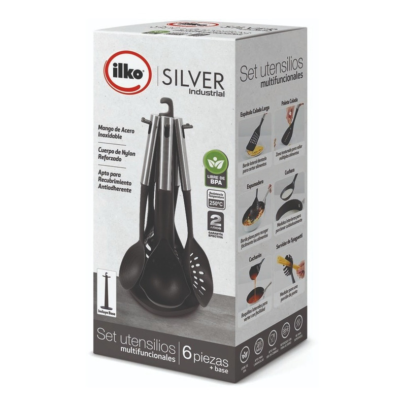 ¡Dale un toque profesional a tu cocina con el Set de 6 Utensilios de Cocina de Ilko! Este elegante conjunto, en un distinguido color negro, está diseñado para los amantes de la cocina que valoran tanto el estilo como la funcionalidad. Confeccionados con materiales de máxima calidad como acero inoxidable para los mangos y nailon para el cucharón, estos utensilios garantizan durabilidad y resistencia en cada uso.