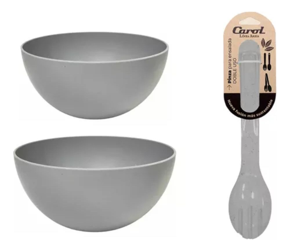 Dale un toque de estilo y practicidad a tu cocina con este elegante set de dos bowls y una pinza de doble uso de la marca Carol. Perfectos para servir, mezclar y más, estos bowls y la versátil pinza serán tus nuevos aliados en la preparación de tus comidas.