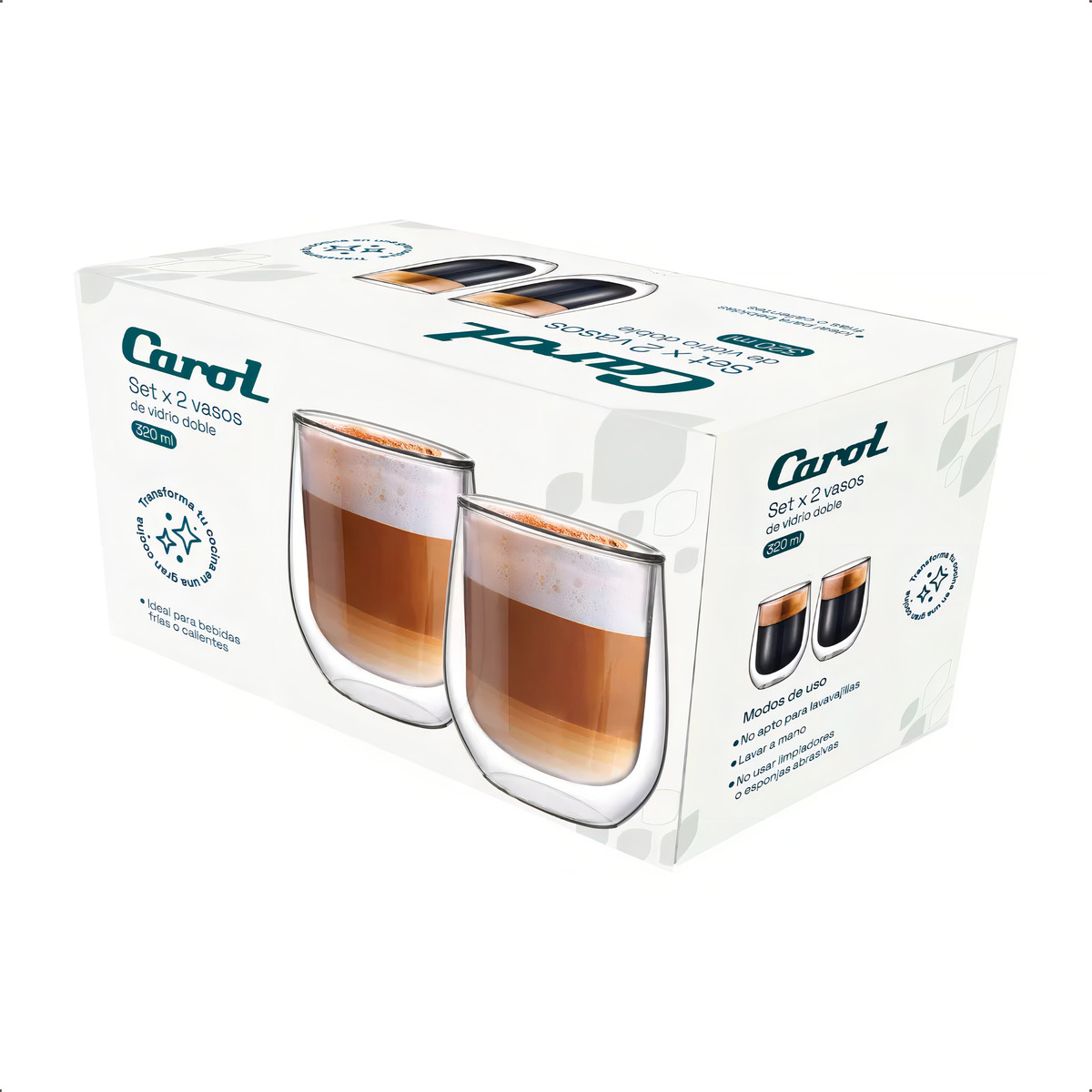 Descubre el elegante Set X2 Vaso de Vidrio Doble Pared para Frío y Calor, ideal para disfrutar de tus bebidas favoritas. Este set de vasos de la reconocida marca Carol está diseñado con un material de vidrio de alta calidad, que no solo resalta su belleza, sino que también garantiza durabilidad. Con una capacidad de 320 ml, estos vasos son perfectos para servir café, capuchino, infusiones o té, manteniendo la temperatura de tus bebidas por más tiempo. Su diseño de doble pared proporciona un aislamiento efectivo, evitando quemaduras en las manos. Con un alto de 11 cm y un diámetro máximo de 8,5 cm, son cómodos de sostener y lucen sofisticados en cualquier mesa. Ten en cuenta que son frágiles y no son aptos para lavavajillas, lo que les añade un toque especial y exclusivo a tu colección de utensilios. ¡Disfruta de momentos únicos con este set!