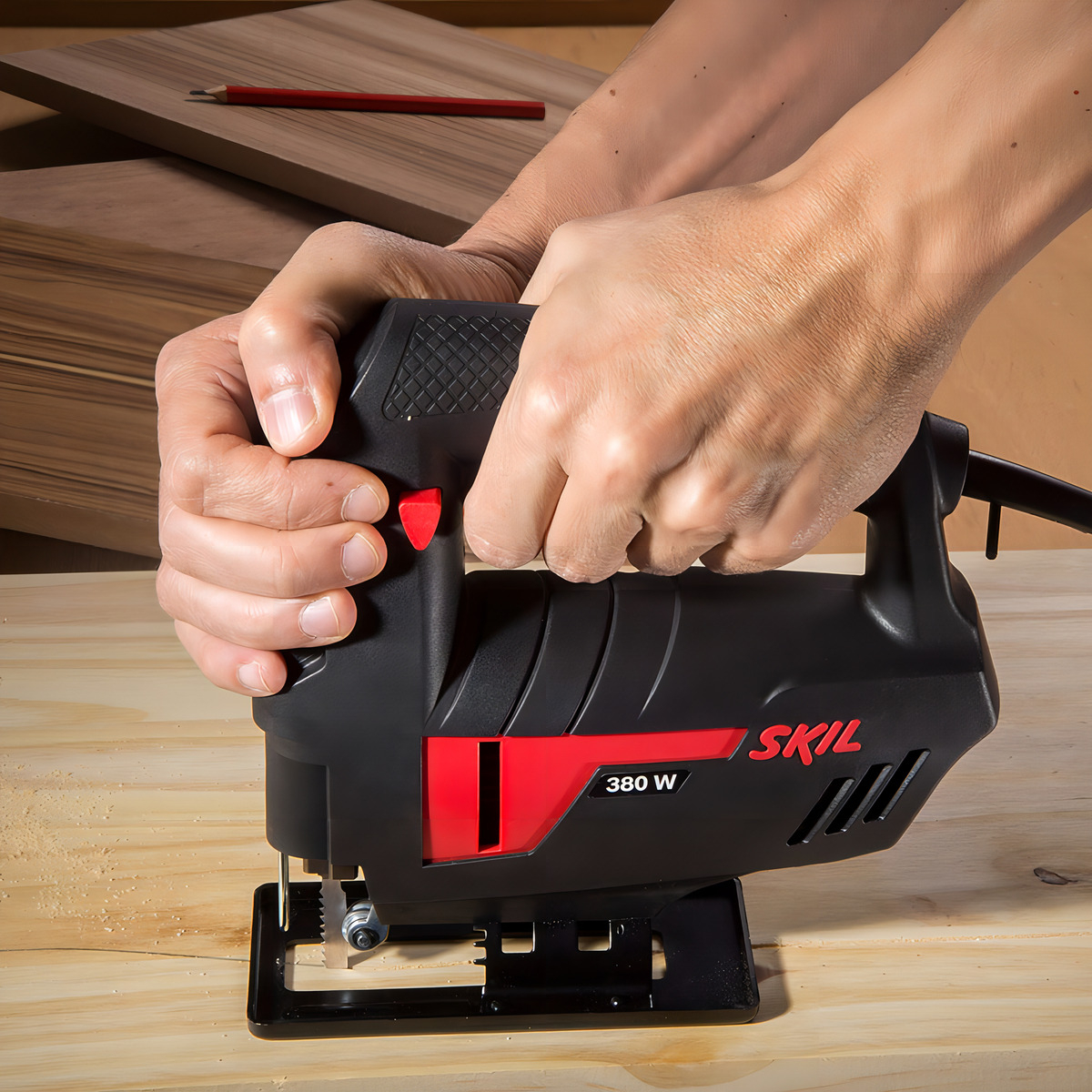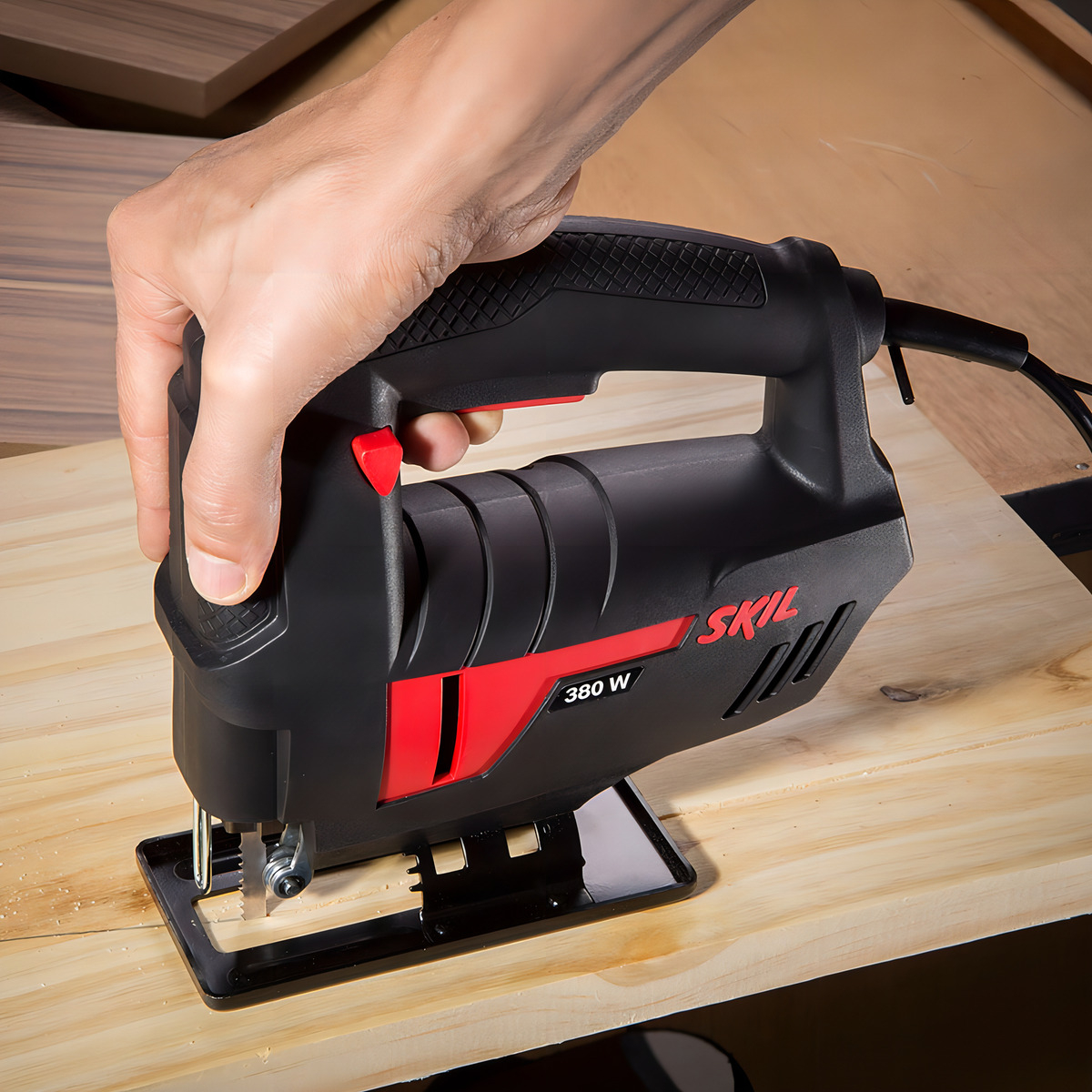 Con la Sierra Caladora Skil 4380 de 380 W vas a poder encarar tus proyectos con más precisión y comodidad, logrando cortes prolijos sin complicarte. Su diseño ergonómico y su gatillo de accionamiento amplio con interruptor de bloqueo hacen que el manejo sea natural, tanto si sos diestro como zurdo, ideal para trabajar de forma más controlada durante más tiempo.