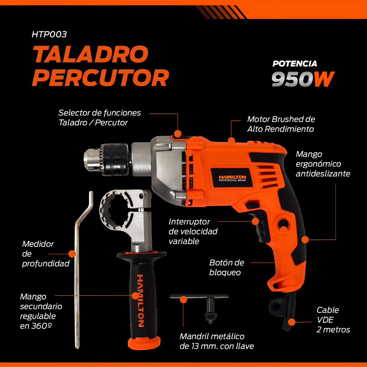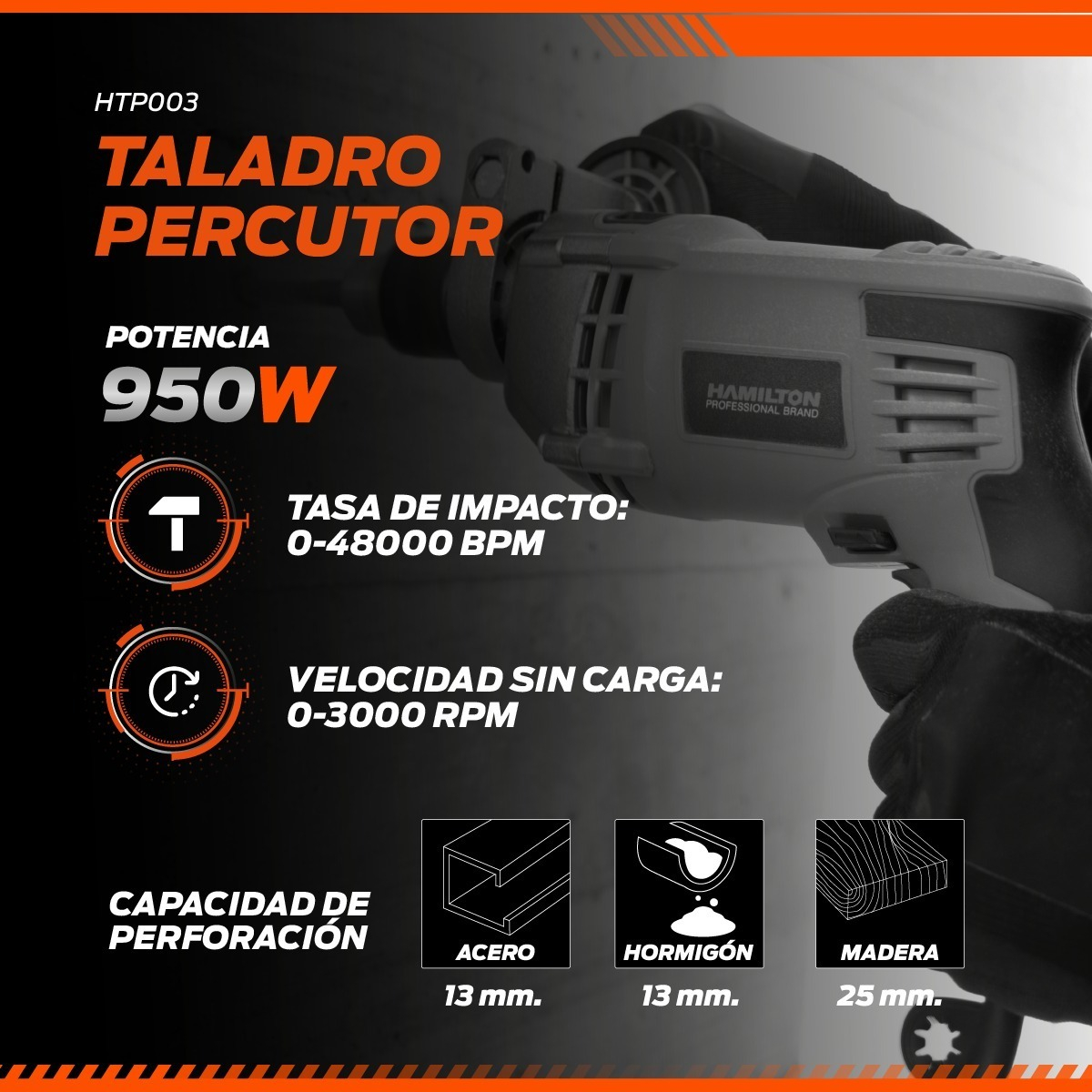 Taladro Eléctrico PROFESIONAL con Percutor 950w 13mm – Hamilton HTP003