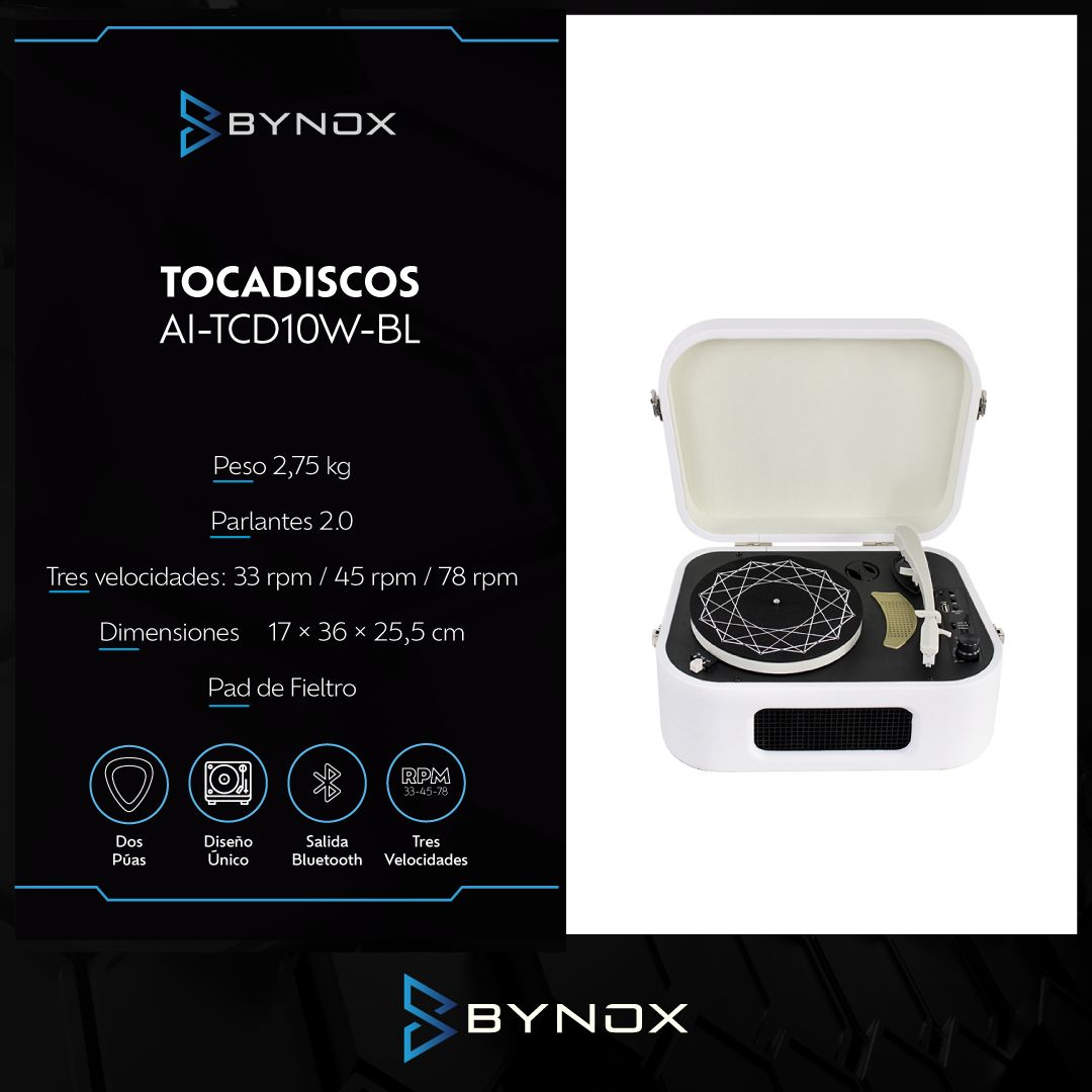 Tocadiscos Bynox Con Bth Cabezal Cerámico Ai-tcd10w-bl