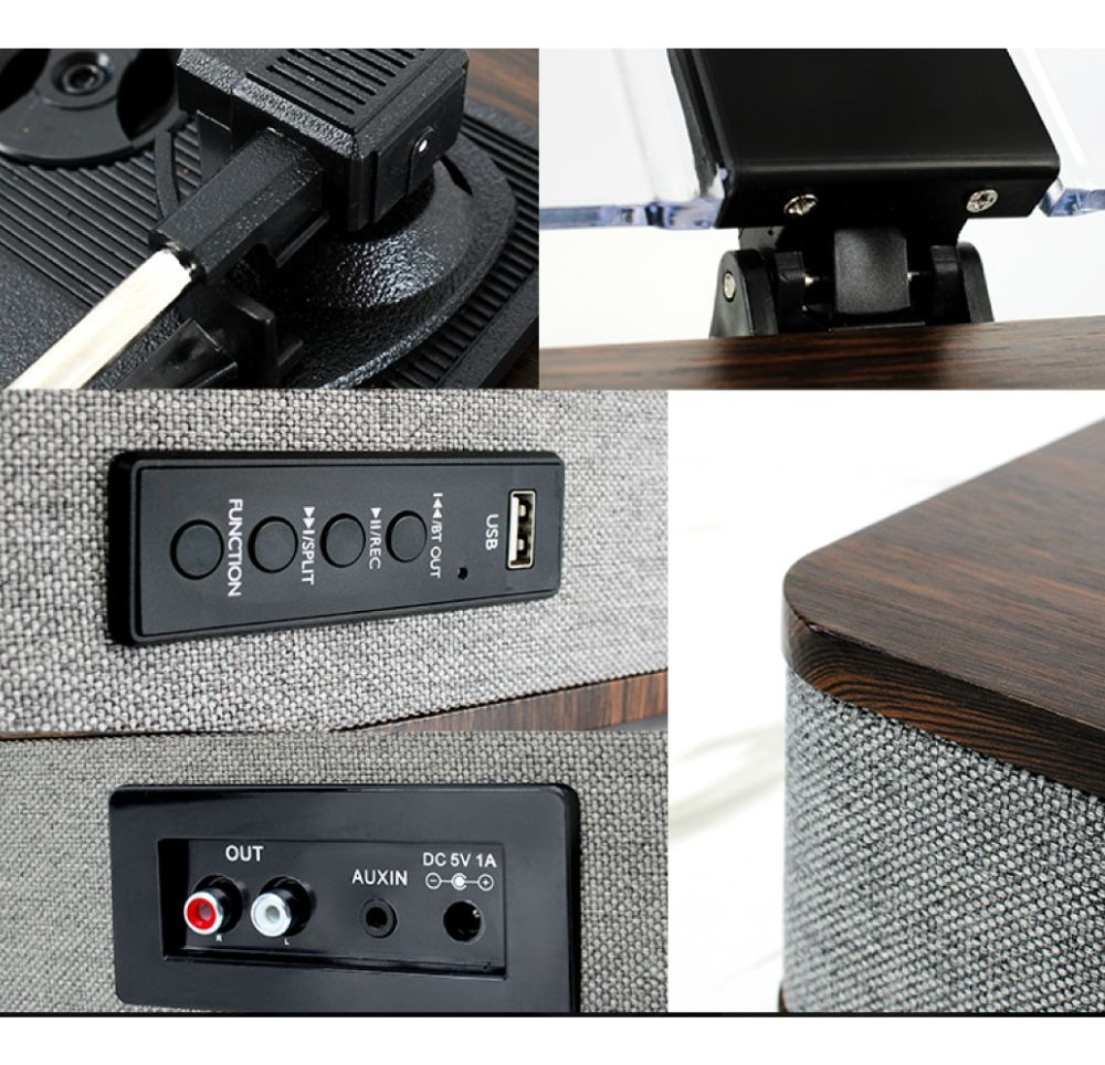 Descubre el Tocadiscos Bynox Vintage con BTH, donde se fusiona lo clásico y lo moderno para ofrecer una experiencia auditiva excepcional. Este elegante dispositivo te permite disfrutar de tus vinilos favoritos con un sonido cálido y nítido a través de sus parlantes integrados 2.0, o conectando auriculares para una escucha más íntima. Equipado con un cabezal cerámico piezoeléctrico para una reproducción precisa, es compatible con velocidades de 33 rpm, 45 rpm y 78 rpm, permitiéndote disfrutar tanto de discos antiguos como modernos. Además, ofrece opciones de conectividad Bluetooth, Aux, RCA y salida para auriculares, así como la función grabadora para convertir tus vinilos en formato digital. Incluye accesorios como 2 púas de repuesto y un pad de fieltro para asegurar una larga vida útil y protección para tus discos.
