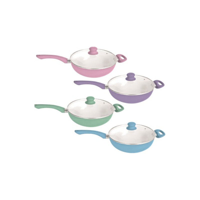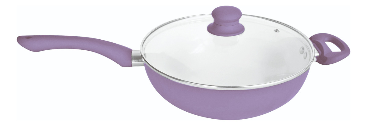 Wok con mango, asa y tapa de vidrio 26 cm ceramica carol